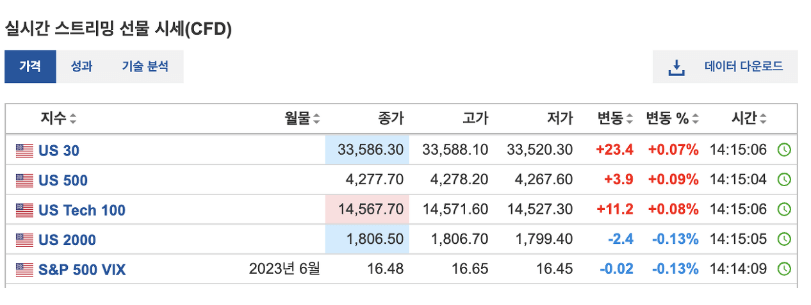 내려가시면 다우존스, S&P500, 나스닥 선물지수 실시간으로 보실 수 있습니다